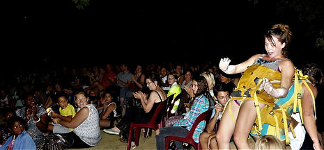 Puis ce fut au tour des Quat'Fers en l'air, avec leurs chutes grotesques, de provoquer chez les enfants une hilarité débordante. La fanfare Espérance de Saint-Coin ne fut pas en reste avec son concert interactif avec le public, enfin Yapunto sur des musiques colombiennes a achevé la soirée.